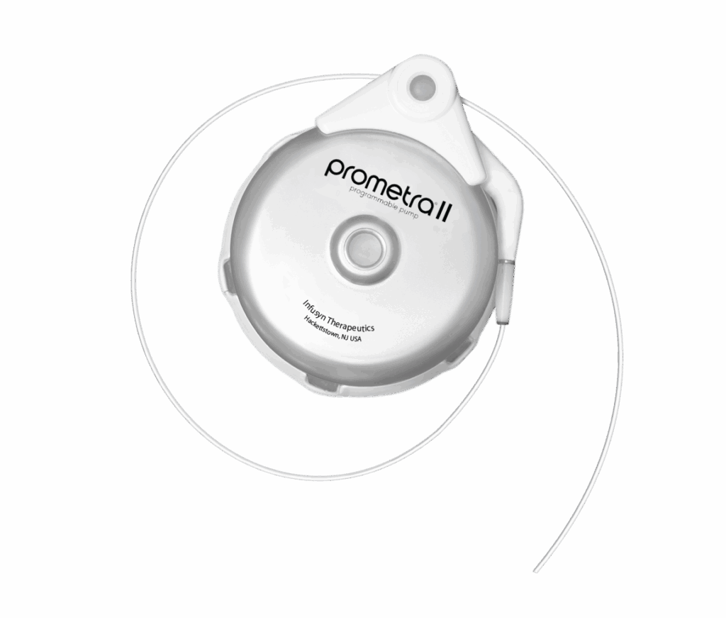 Brief Statement for US Consumers | PL-19701-04 | Issue date: August 2024 IMPORTANT SAFETY INFORMATION FOR PROMETRA DRUG DELIVERY SYSTEMS -BRIEF STATEMENT Indications: The Prometra® Programmable Infusion Pump System is indicated for intrathecal infusion of drug therapy, including:Infumorph ® (preservative free morphine sulfate sterile solution), preservative-free sterile 0.9% saline solution (Sodium Chloride Injection, USP), and baclofen (baclofen injection, intrathecal, 500-2000 mcg/mL). For Infumorph, the pump is indicated for use in adult populations of 22 years and older. For baclofen and 0.9% saline solution, the pump system is indicated for use in patient populations of 12 years andolder (adolescents and adults). Drug Information: See drug labeling for indications, contraindications, warnings, precautions, adverse reactions and under/over dose symptoms. Tell your doctor about any drug related signs or symptoms you may experience. Contraindications: The Prometra pump system should not be implanted if: you have an infection (known or suspected); your body type cannot safely accommodate the pump size and weight; the pump cannot be implanted 1 inch below the skin; you have allergies to catheter or pump materials; you have had an intolerance to implanted devices in the past; your spinal column anatomy obstructs cerebrospinal fluid flow or prevents intrathecal drug delivery; you are deemed an unsuitable candidate after psychological evaluation; you have an occupation with exposure tohigh current industrial equipment, powerful magnets or transmitting towers; you require hyperbaric therapy. Warnings: FAILURE TO EMPTY THE PUMP PRIOR TO EXPOSURE TO MRI ENVIRONMENT COULD RESULT IN DRUG OVERDOSE THAT COULD LEAD TO SERIOUS PATIENT INJURY OR DEATH; THE PUMP MAY NEED TO HAVE AS MUCH AS 20ML OR 40ML OF DRUG REMOVED DEPENDING ON THE PUMP TYPE AND MODEL NUMBER.USE OF UNAPPROVED DRUGS (e.g., DRUG COCKTAILS, PHARMACY COMPOUNDED DRUGS, MORPHINE WITH PRESERVATIVES, ETC.) WITH THE PROMETRA II PUMP COULD RESULT IN PUMP FAILURE AND/OR SERIOUS ADVERSE EVENTS SUCH AS SEVERE UNDERDOSE, OVERDOSE OR DEATH. If an MRI is required, your doctor MUST empty your pump of all medication prior to the MRI.Your doctor should be familiar with approved drug intended for use with the implanted pump system, including dosing and symptomsrelated to and treatment for under-or over-dosing. Precautions: Tell your doctor about any new neurological signs or overdose/withdrawal symptoms you may experience. Pain on injection may be early sign of infection. Seek immediate medical attention if you experience early signs of baclofen under-dose or withdrawal. In the pediatric population, care must be taken to select an appropriate location, taking into consideration available body mass, presence of ostomies, growth development, and comorbidities. Adverse Events:The potential exists for serious complications. Adverse events include but are not limited to: pocket seroma/hematoma with or without infection, pump site skin erosion, pump rotation/migration/flipping or twisting, adverse reaction to pump materials, granuloma; infection in intrathecal space, including meningitis, nerve damage. Additional potential adverse events are included in the Patient Guide. For full disclosure of contraindications, warnings, precautions, adverse events and MRI Instructions, please call Infusyn at 855-356-9665 and/or consult Infusyn website at Infusyn.com Caution: Federal Law (USA) restricts this device to sale by or on the order of a physician. INFUSYN and PROMETRA are trademarks of InfusynTherapeutics, LLC. |